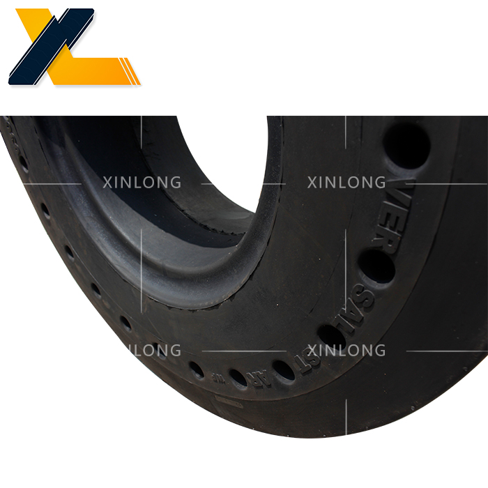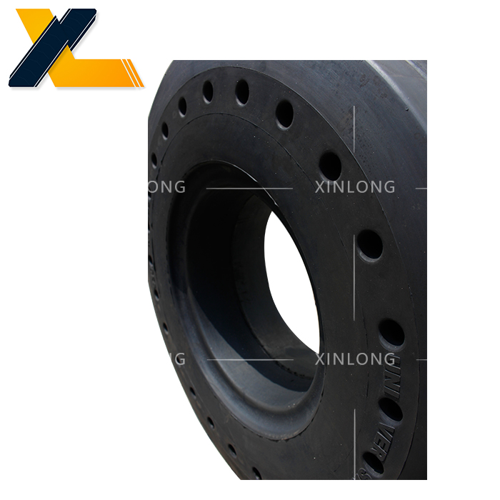 采用國家標準輪輞,可以與充氣輪胎互換。與充氣胎相比,耐磨、使用壽命長、滾動阻力小、能耗低、耐刺破、安全,有更高的性能價格比,在低速、高負荷運行車輛領域中,是充氣胎的換代產品。