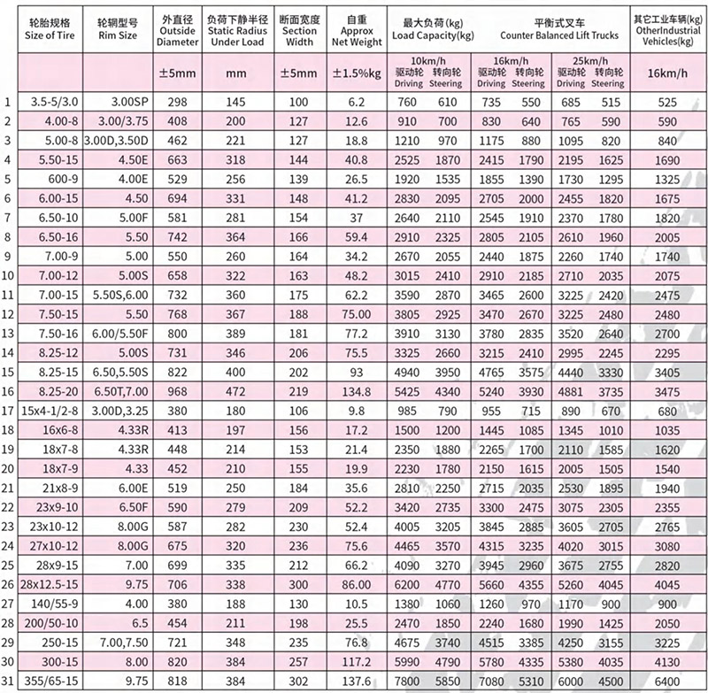 負荷大、滾動阻力小、能耗低、廣泛用于叉車及其他工業車輛